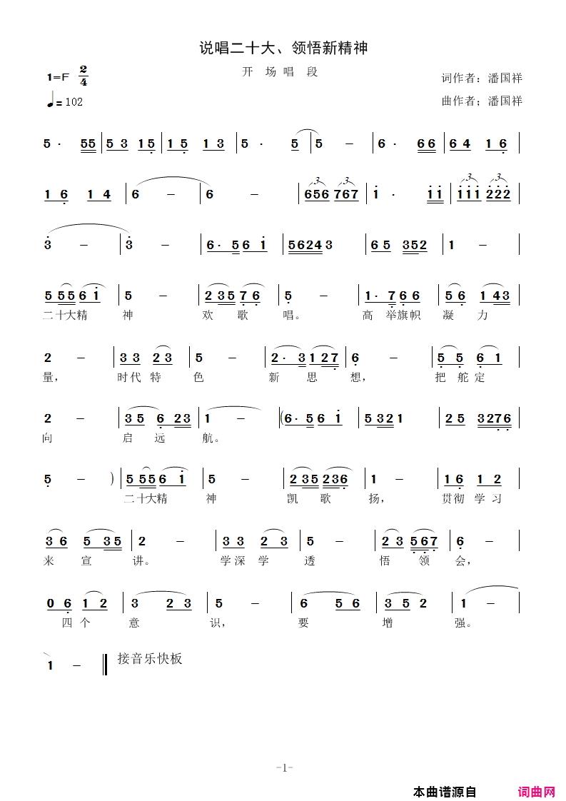 当前位置:首页 - 简谱 - 流行简谱 - 说唱二十大、领悟新精神