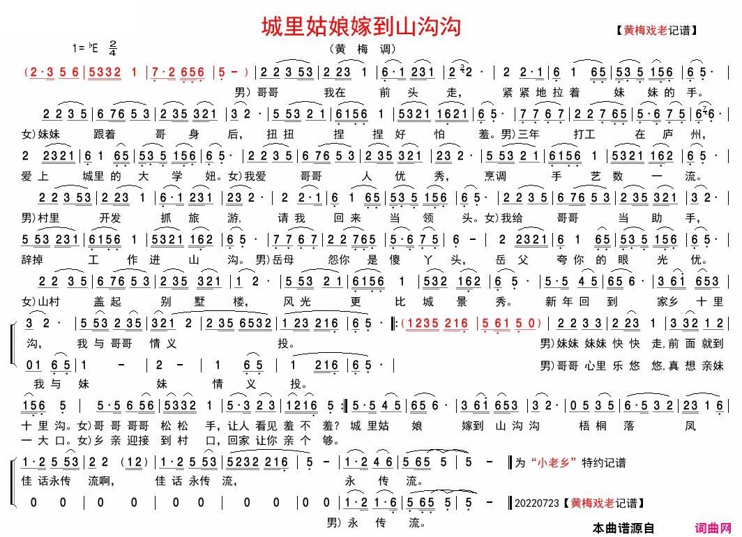 城里姑娘嫁到山沟沟-黄梅歌简谱