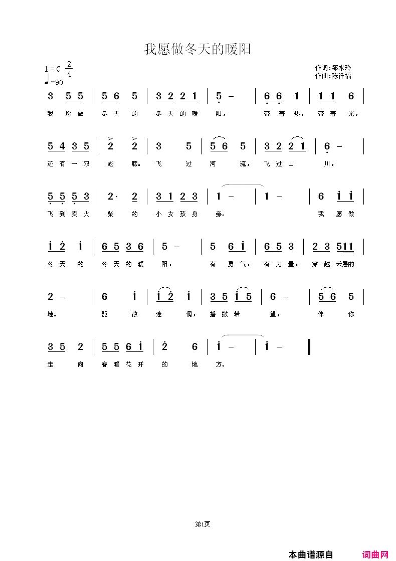 当前位置:首页 - 简谱 - 流行简谱 - 我愿做冬天的暖阳