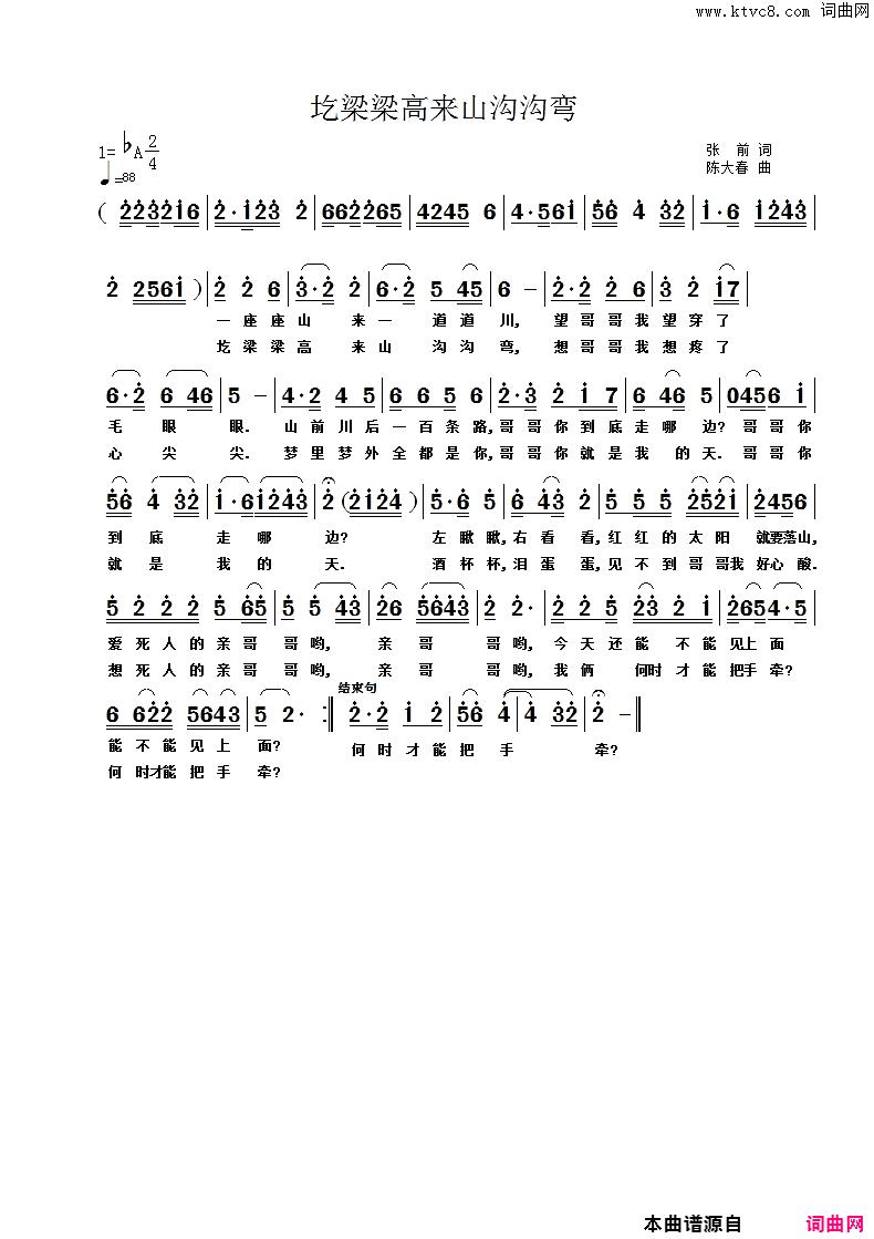 当前位置:首页 - 简谱 - 流行简谱 - 圪梁梁高来山沟沟弯