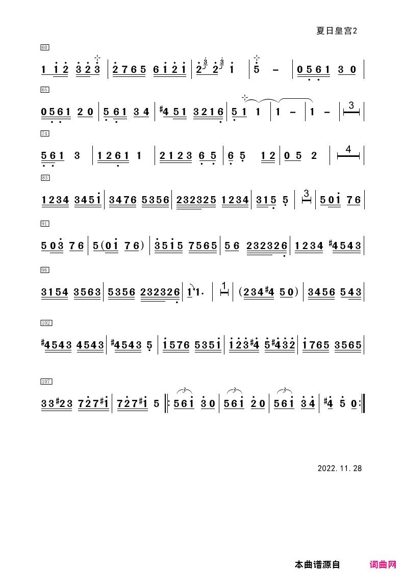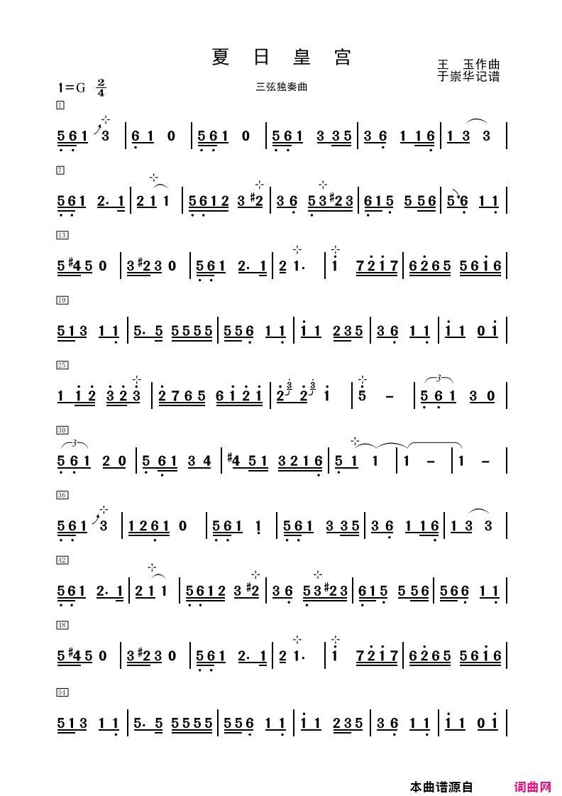 夏日皇宫 2张简谱