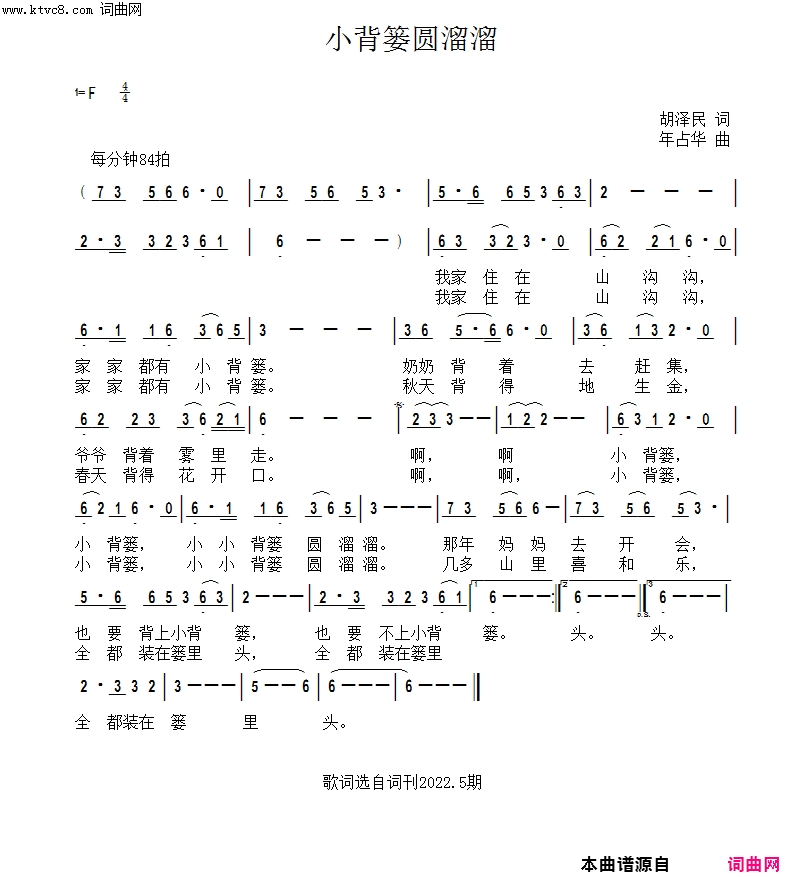 当前位置:首页 - 简谱 - 流行简谱 - 小背篓圆溜溜