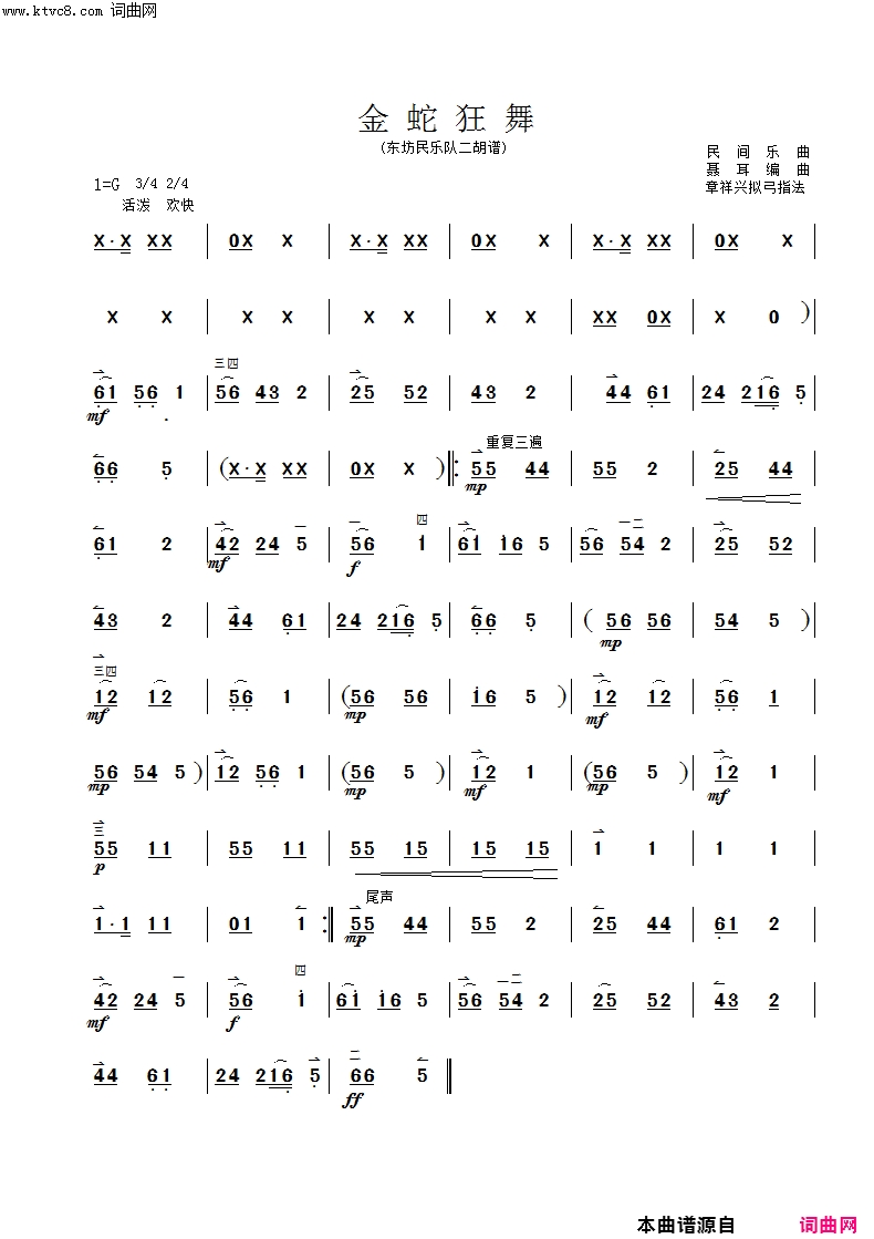 金蛇狂舞-二胡齐奏曲谱简谱2026-02-18